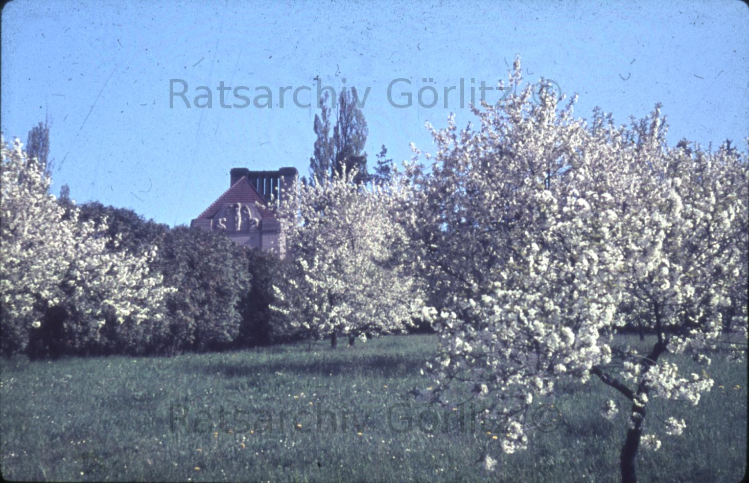 Stadt, Ölberg, Ölberggarten, Baumblüte und Krematorium