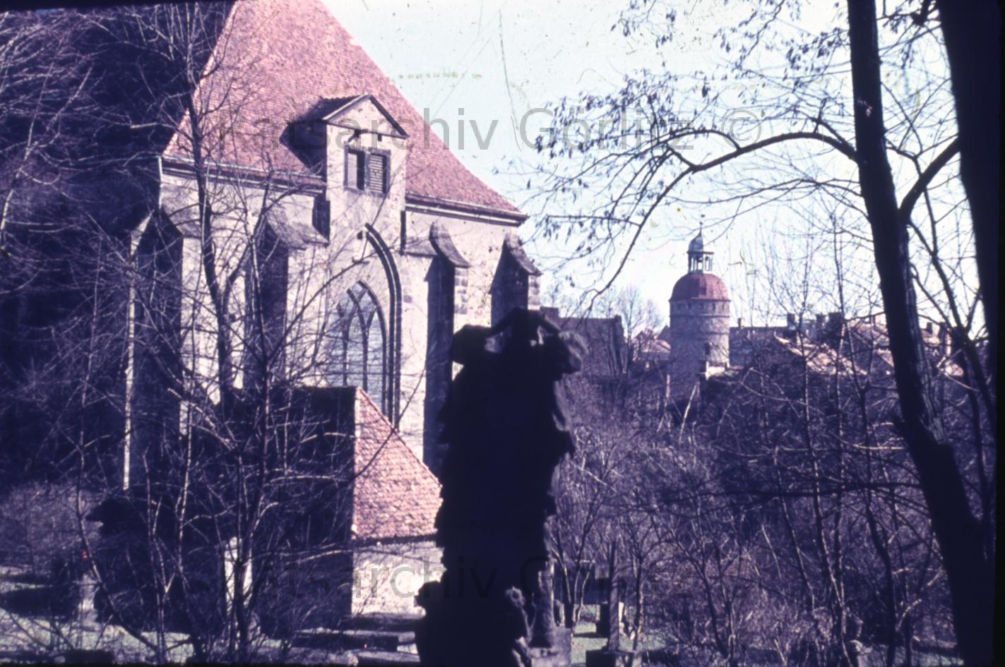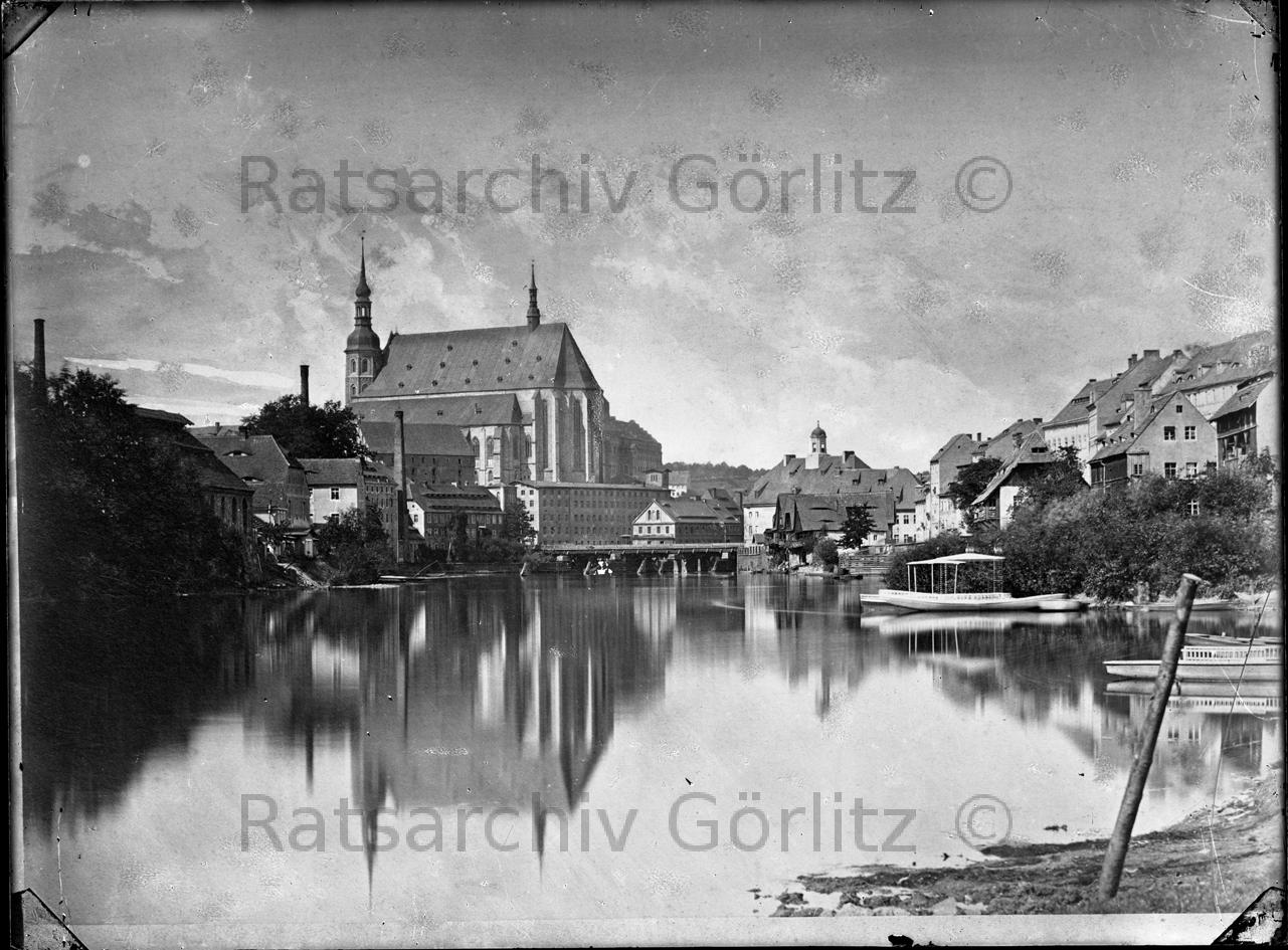 Blick zur Peterskirche und Neiße, Kirche
