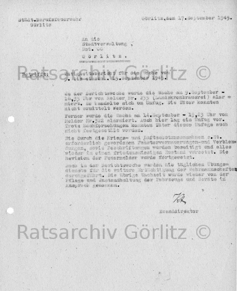 Tätigkeitsbericht Feuerwehr (Schrift)
