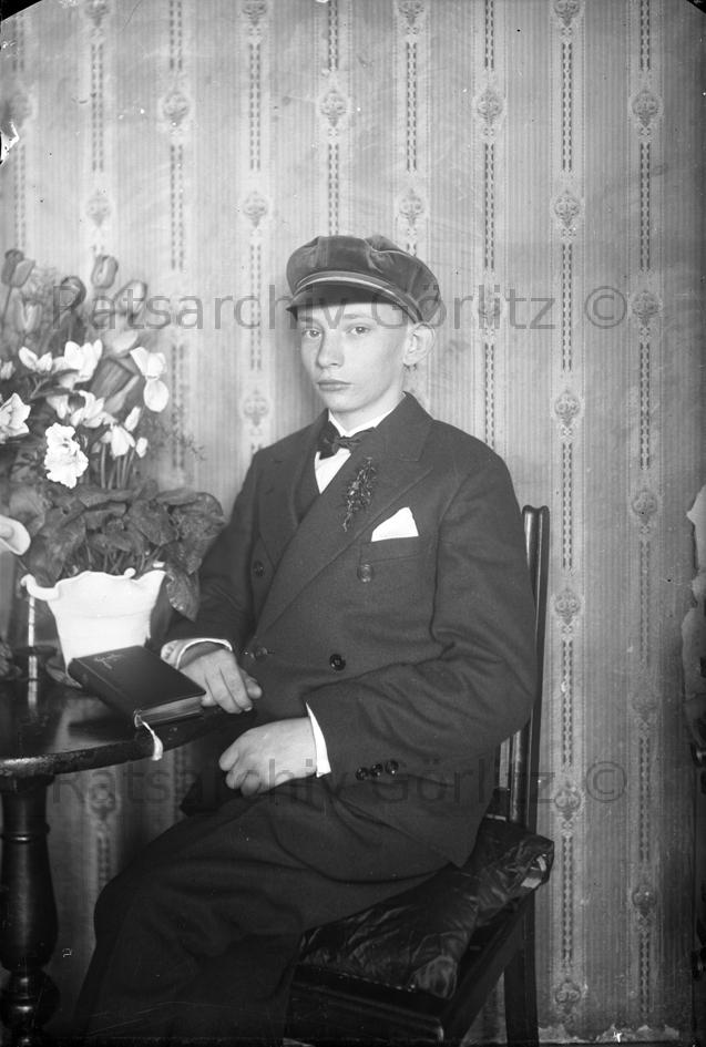 Junger Mann in Konfirmationskleidung, Porträt